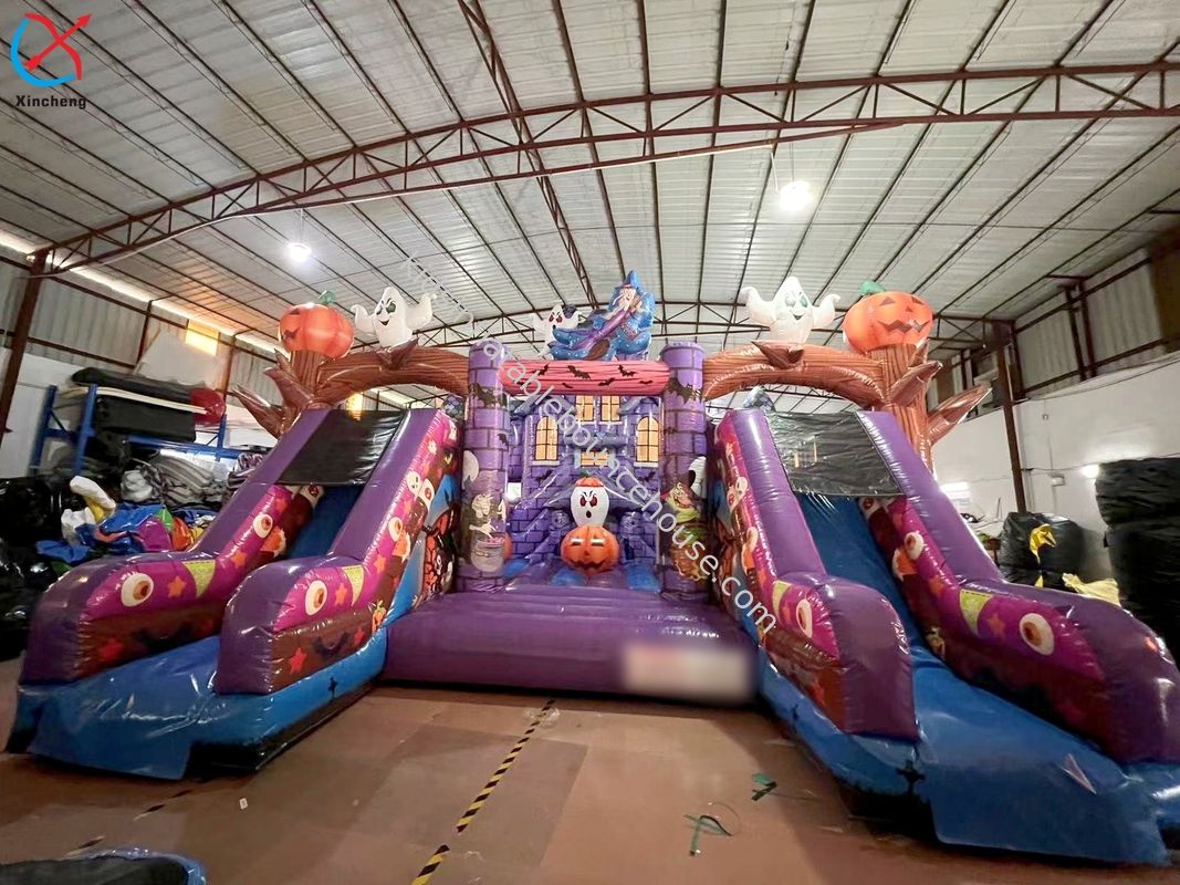 مدينة المرح المضخمة التجارية هالوين اليقطين البنفسجية القلعة المضخمة