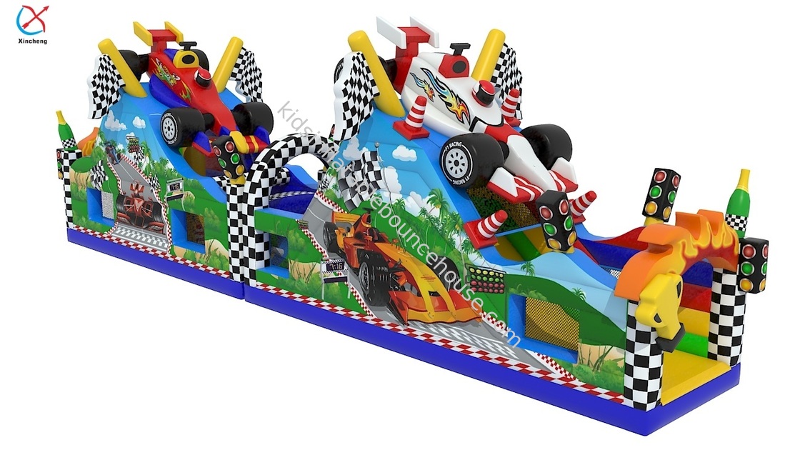 Manufacturer Obstacle Course Bounce House Car Race Inflatable Obstacle Course With Slide 0